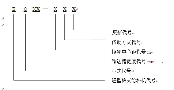 BQ系列輕型板式給料機適用于沿水平或傾角的直線段向工作機械或給料裝置的料倉、漏斗及其它容器連續均勻地配給散狀物料。其堆積容重不超過1200kg/m3,物料溫度不超過350℃,物料塊重不超過140k的塊狀物料。安裝傾角為0°~20°,傳動裝置可左裝或右裝,在物料運行方向右側為右傳動,反之為左傳動。